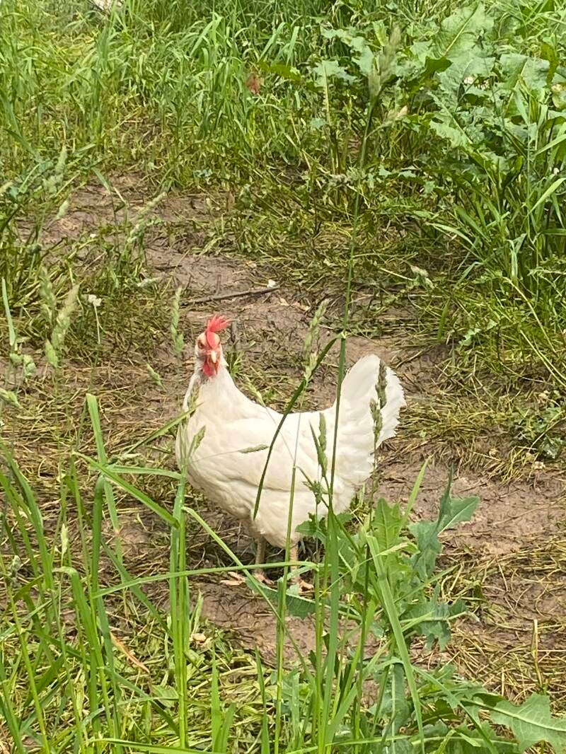 Unsere Hühner, Rasse Sandy, leben in einem großen und modernen Mobilstall und werden etwa alle 6 Wochen umgestellt. So erhalten Sie regelmäßig frische, saftige, grüne Weiden mit genügen Auslauf. Das Hühnerfutter beziehen wir aus unserer Region.